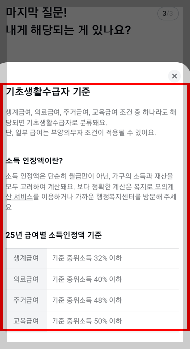 → 거주지, 가족 구성, 소득 수준 등 간단한 정보 입력