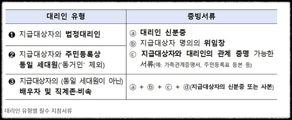 ⭕ 본인·대리 신청 모두 불가능하며, 이미 지급받은 경우 잔액 환수 대상입니다.