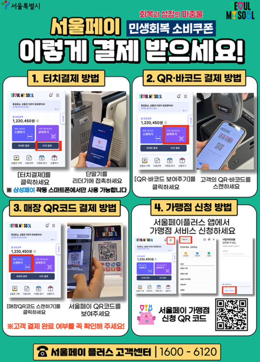 - 서울페이플러스 앱 또는 서울시 사이트 ‘가맹점 찾기’ 기능 활용 - 기한·잔액 주의