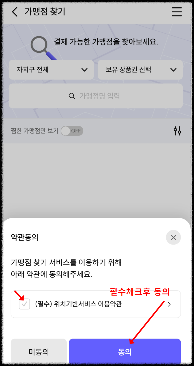 - 앱에서 ‘가맹점 찾기’ 기능 활용