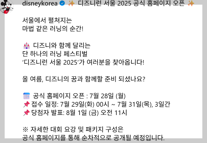 이 글에서는 참가 신청 일정, 당첨자 발표, 코스 정보까지 디즈니런 참가 전 꼭 알아야 할 정보를 한눈에 정리해드립니다.
