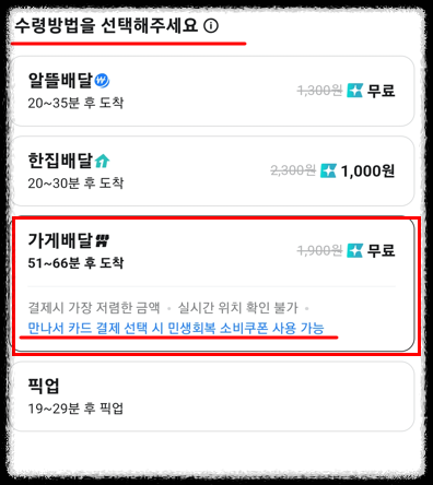 간단히 말해, 배민과 요기요에서는 '가게배달' + '만나서 결제' 조건을 만족해야 사용할 수 있고,