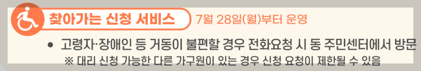 - 신청 장소: 주소지 관할 행정복지센터(읍면동 주민센터)