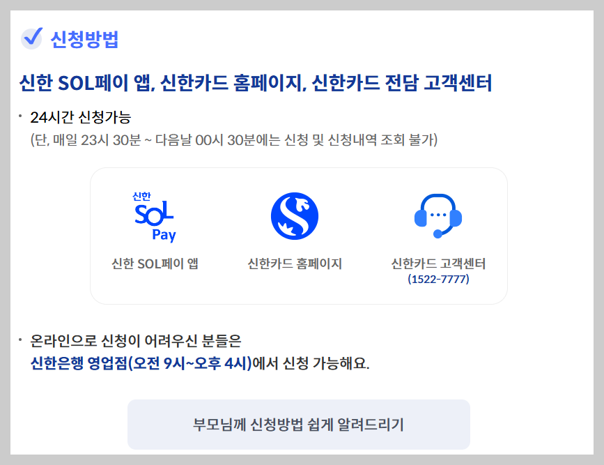 → 네! 전화, 은행, 주민센터에서도 신청 가능합니다. - Q. 신한카드가 없으면요?