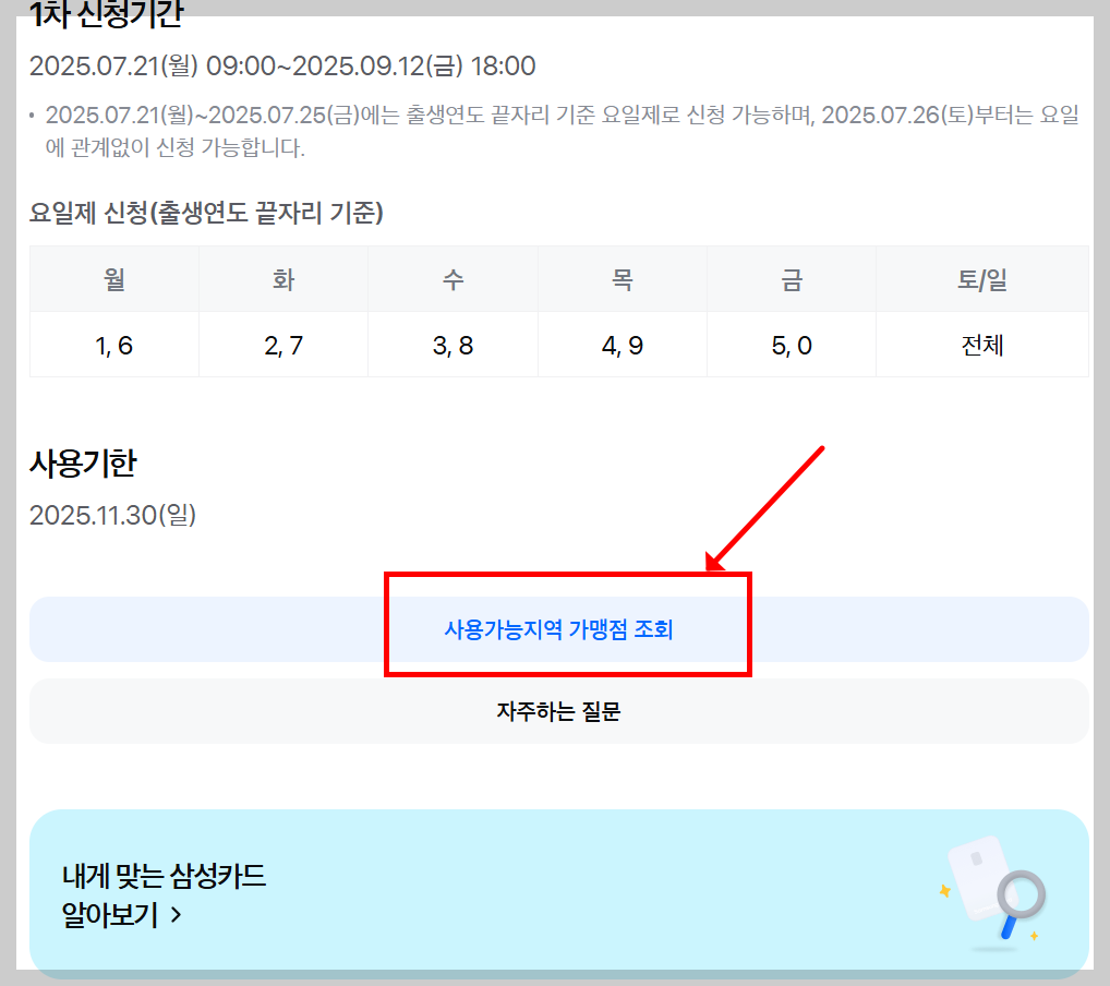 💡 소비쿠폰은 정부 지원 정책으로, 카드사마다 사용 가능한 가맹점이 조금씩 다릅니다.