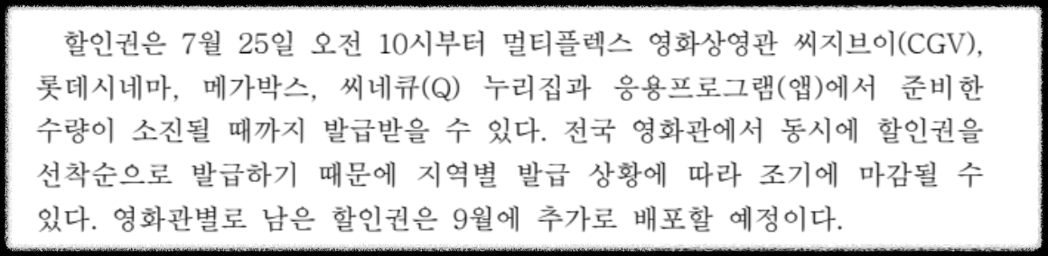 • 2025년 여름, 정부 예산으로 영화관람 할인권이 배포됩니다.