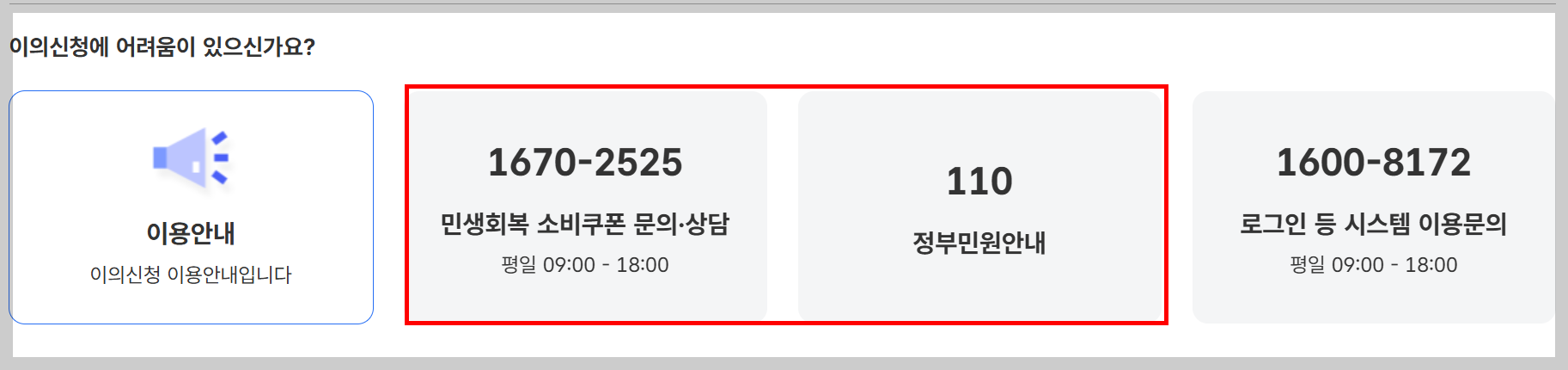 - '민생회복 소비쿠폰 지급 이의신청' 선택