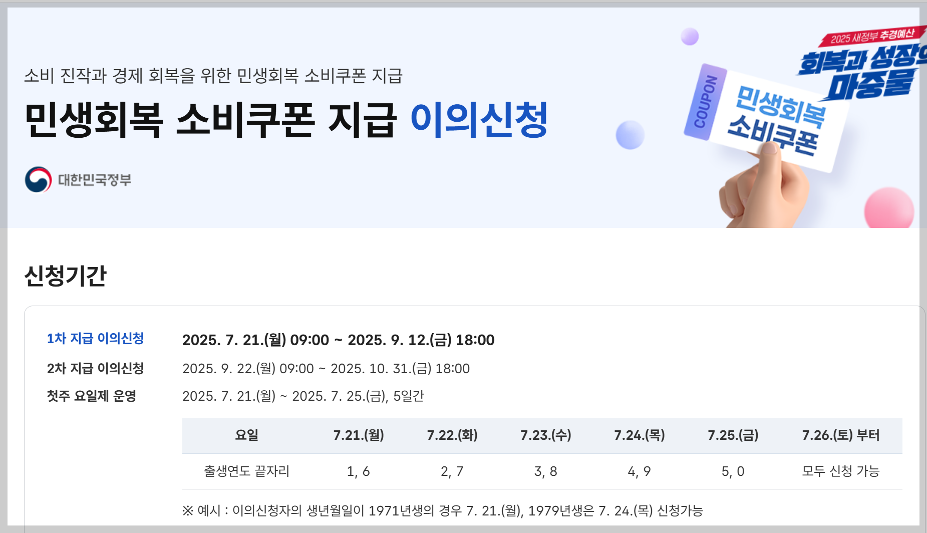2025년 7월 21일부터 정부가 지급하는 전 국민 대상 소비지원 정책으로, 저소득층, 다자녀, 소상공인 등에게 지급됩니다. 지급 금액이나 대상에 문제가 있다면 이의신청을 통해 정정 요청이 가능합니다.