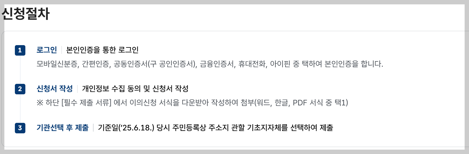 - 🏡 주소지 변경: 기준일(2025년 6월 18일) 당시 주소지를 증명할 수 있는 등본