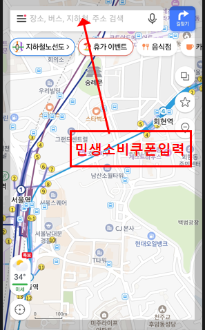 - 티맵: 앱실행 후 → 민생 소비쿠폰 입력 또는 도착장소 입력 후 클릭