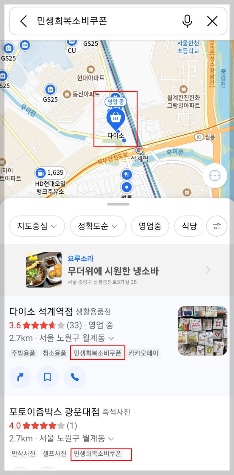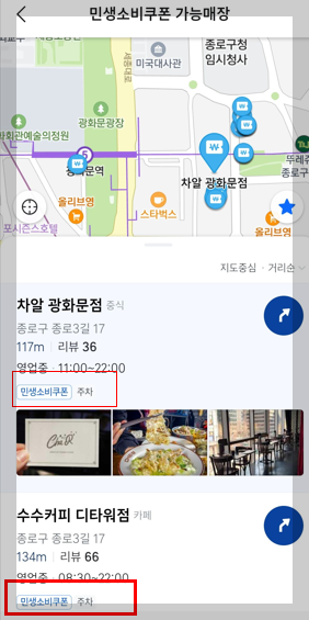 지도 앱에서 ‘소비쿠폰’ 키워드를 검색하면