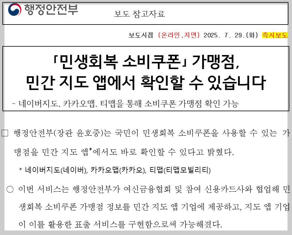 - 네이버지도: 검색창에 “민생회복 소비쿠폰 ” 또는 “소비쿠폰 가맹점 ” 입력