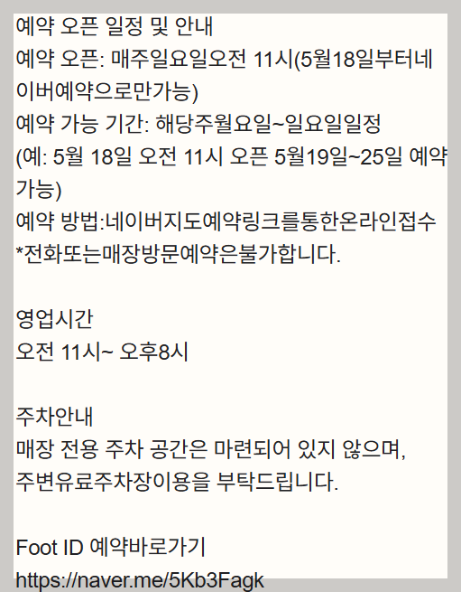 ※ 전화 또는 매장 방문 예약은 불가능하며, 온라인으로만 예약이 가능합니다.