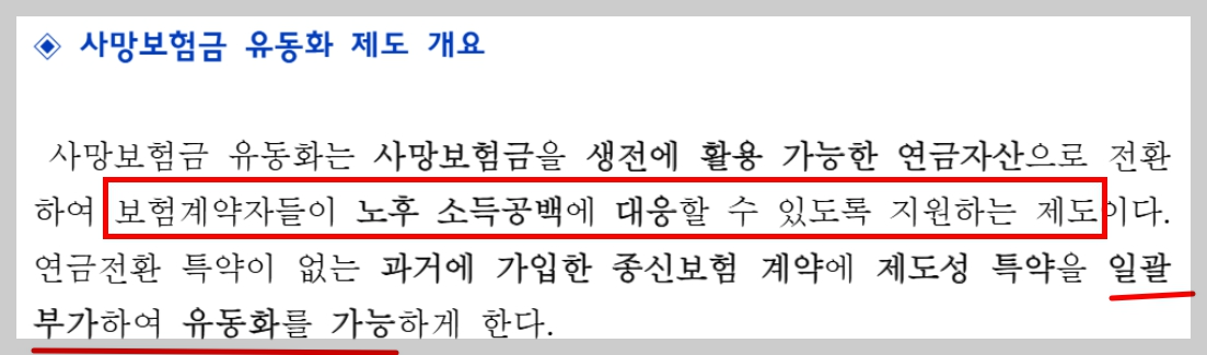 기존에는 사망 시에만 지급되던 보험금을, 만 55세 이상이라면 살아있는 동안 연금 형식으로 미리 받을 수 있도록 설계된 제도입니다.