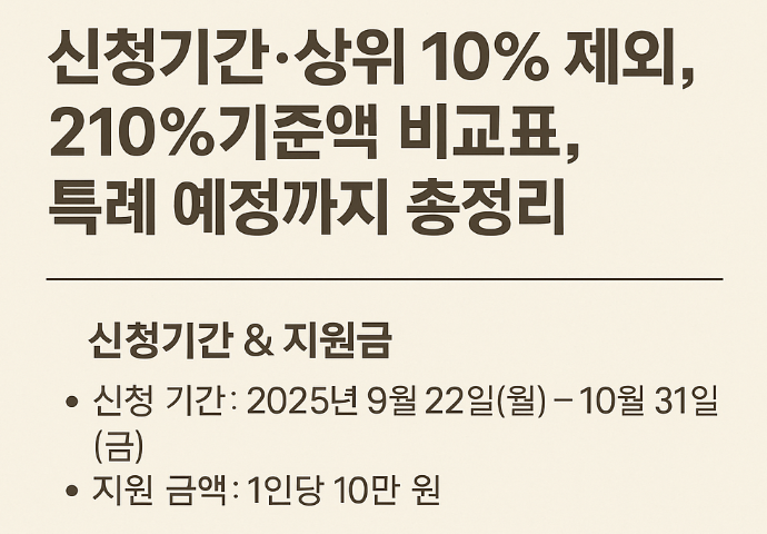 👉 신청기간, 중위소득 210% 비교표, 제외 기준, FAQ까지 한눈에 확인하세요.