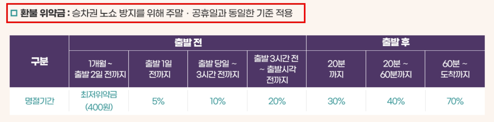 Q3. 명절 기차표 환불 수수료는 다른가요?