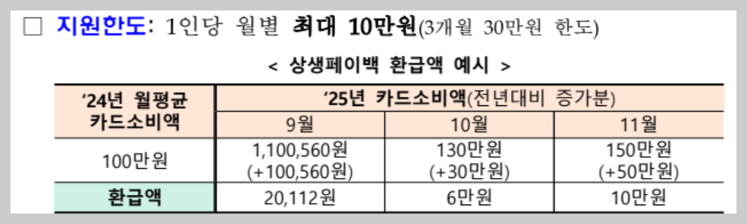 - 2025년 소비액 및 페이백 지급액: 신청자 기준 9월 17일부터 확인 가능
