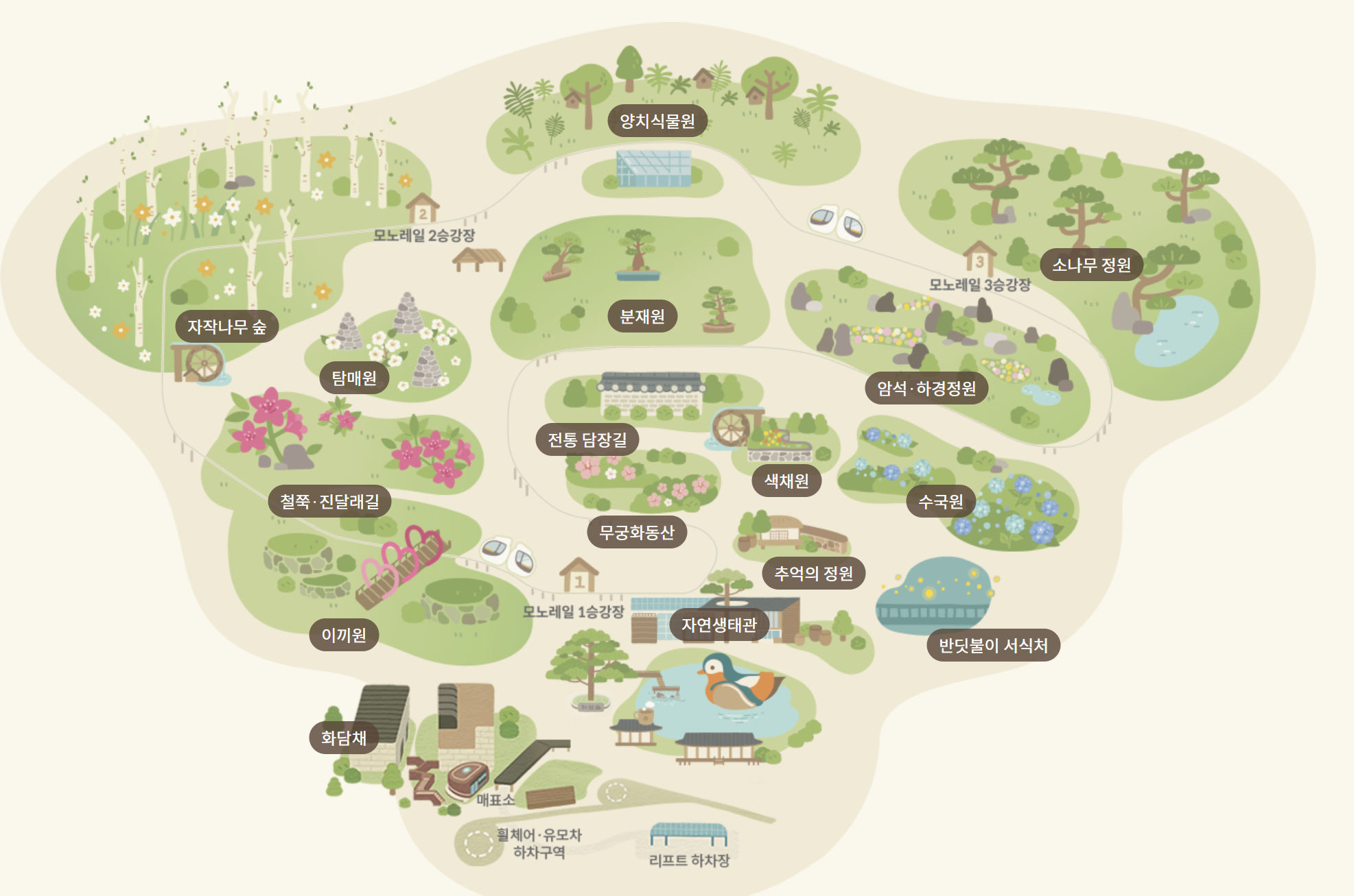 - 암석/하경정원 데크: 모노레일 촬영 명소