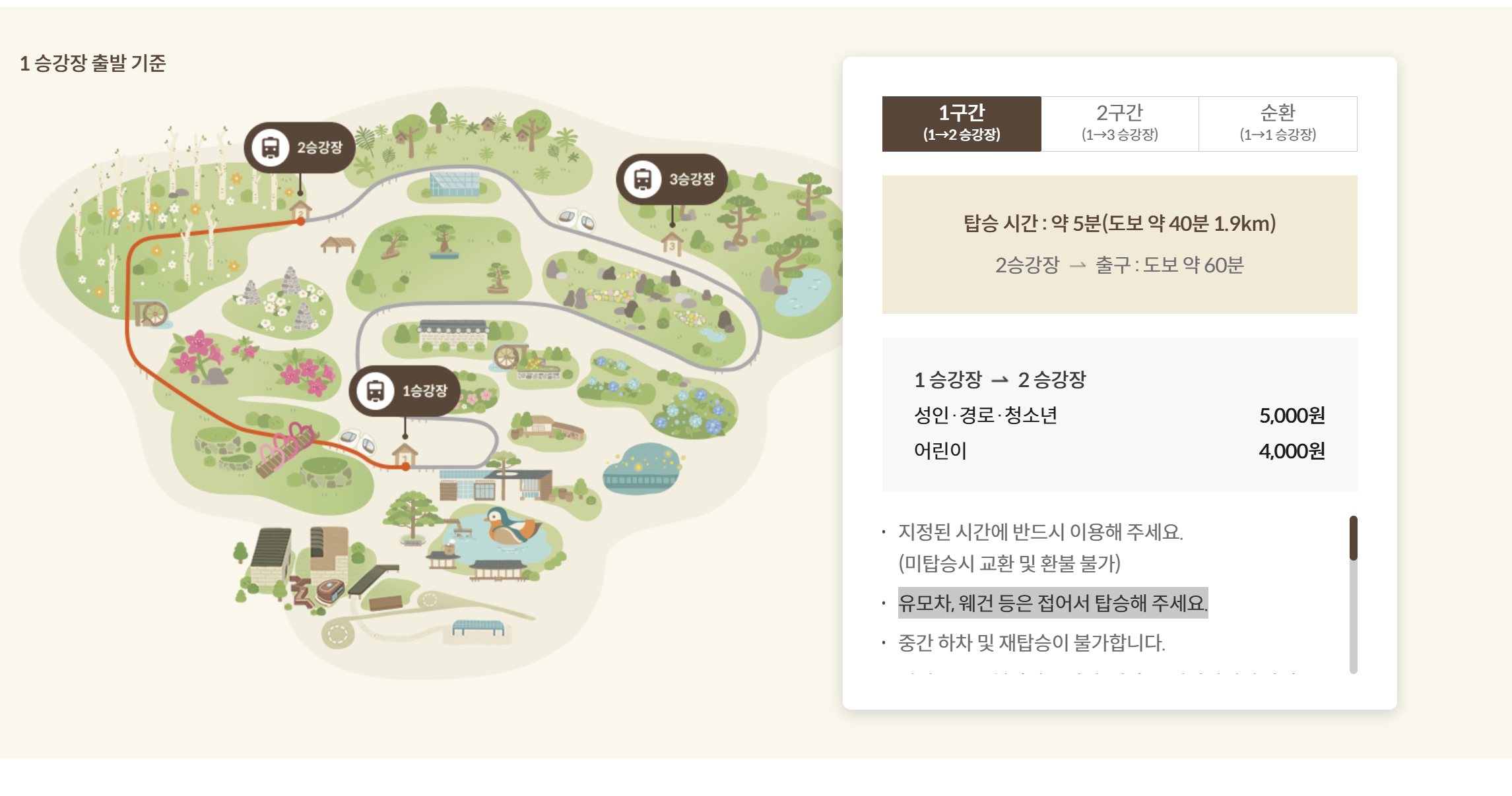 | 모노레일 1구간 | 5,000원 | 5,000원 | 4,000원 | 무료 |