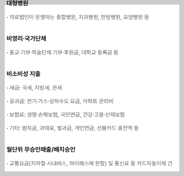 🚫 실적 제외되는 사용처 및 결제