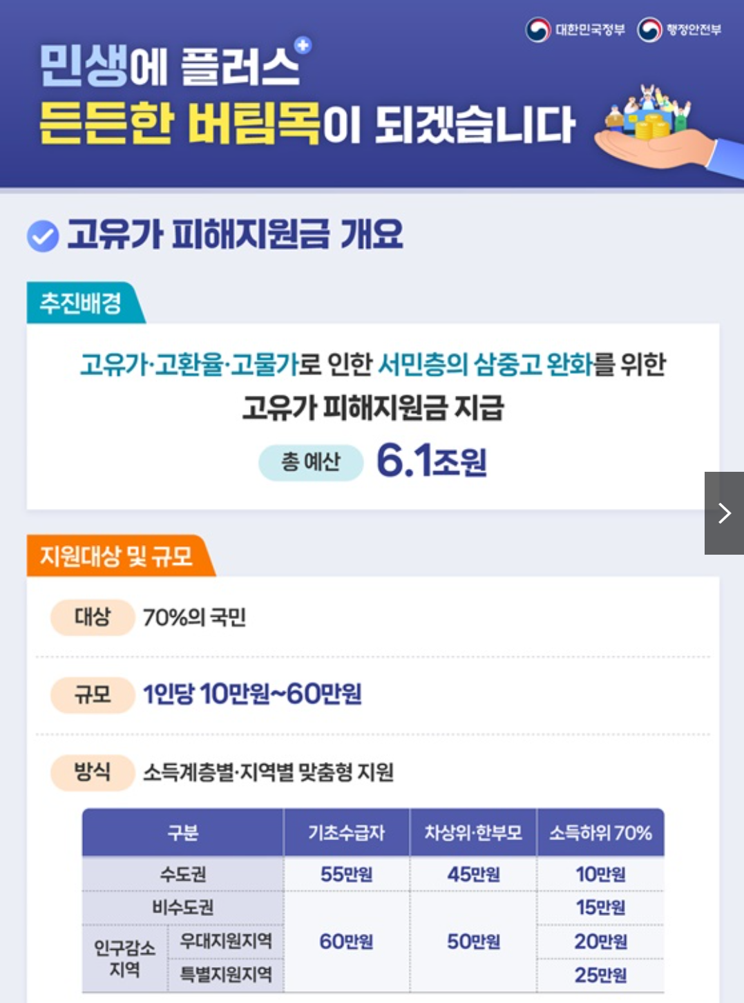 고유가·고환율·고물가로 인한 부담을 줄이기 위해 정부가 시행하는 지원 정책입니다.