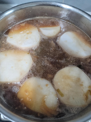 준비된 무를 이렇게 넣아주고 50분 정도 조리를 해줍니다.