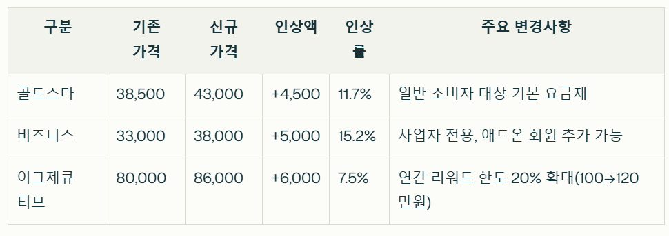 🔥각 멤버십 인상율