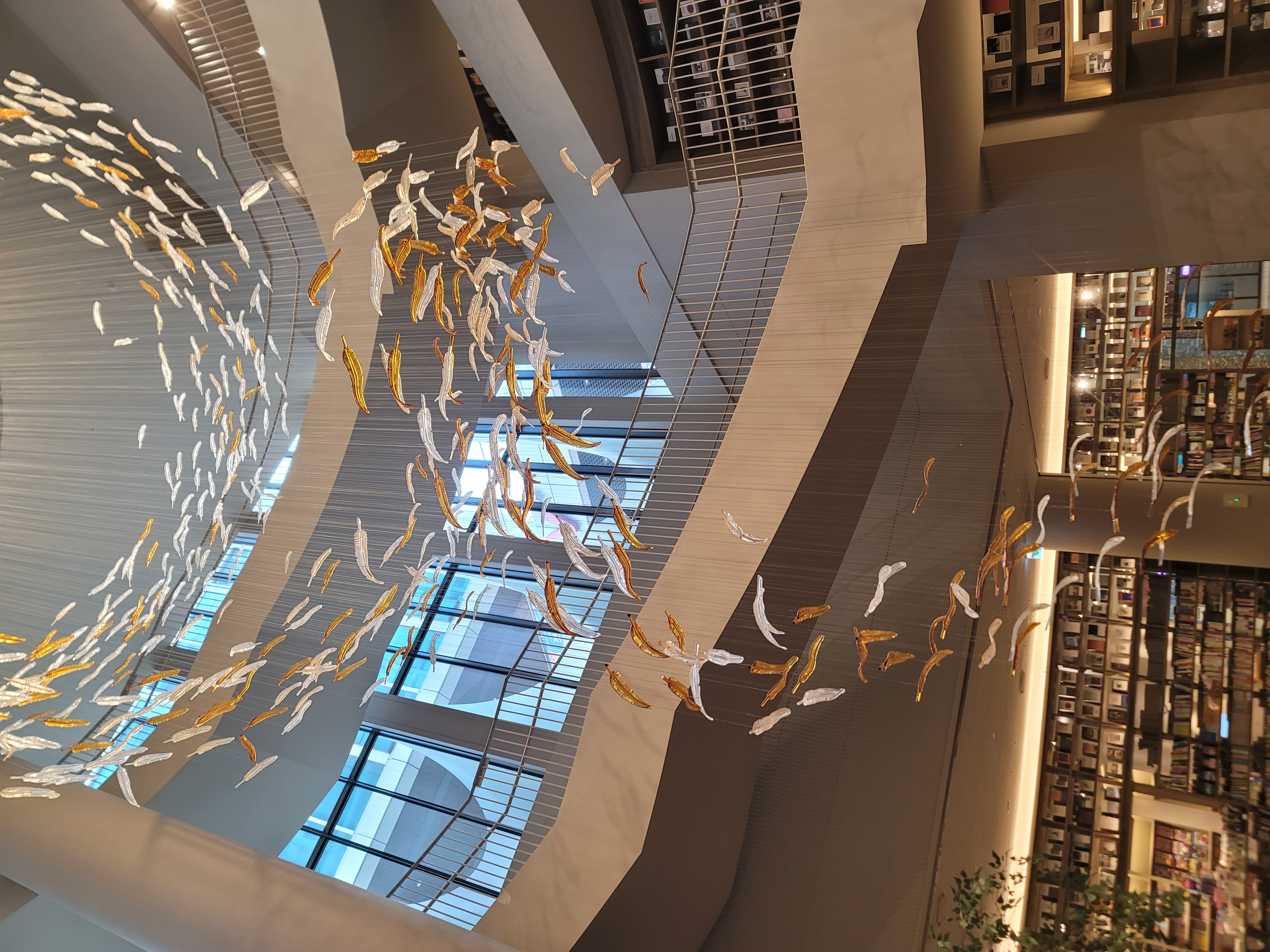• 계단을 통해 이동하며, 중간에 독특한 깃털 조형물이 설치되어 있어 포토존으로 인기가 많다고 해요