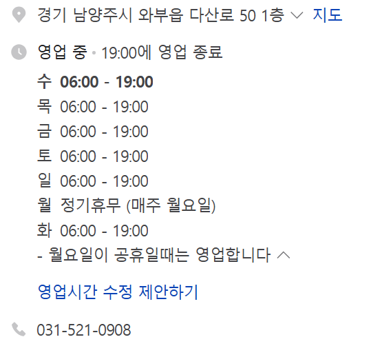 - 영업시간: 매주 화요일 ~ 일요일 06:00~19:00