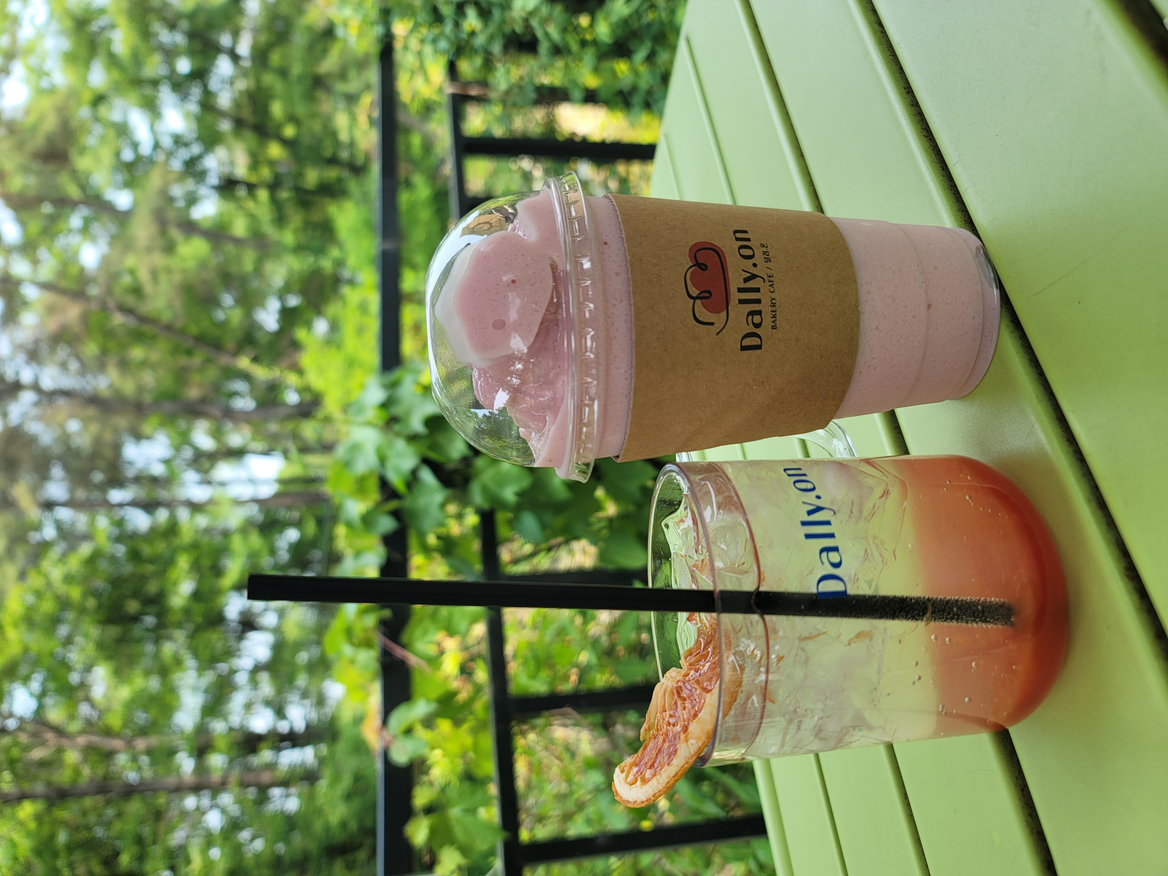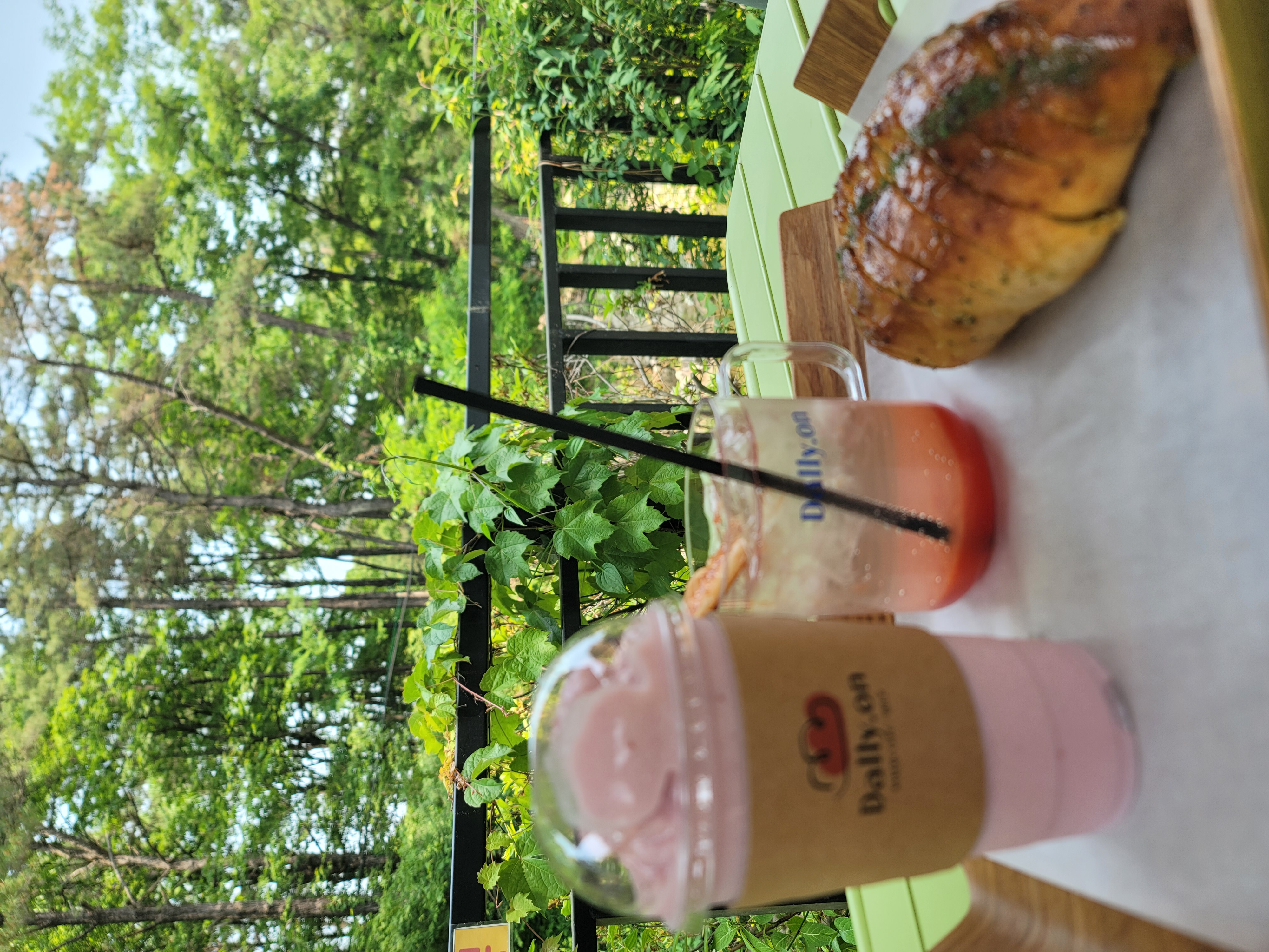 우리가 주문한 메뉴는 딸기라떼와 자몽에이드, 그리고 마늘빵을 주문했는데, 상큼한 과일 음료와 고소한 빵 조합이 의외로 잘