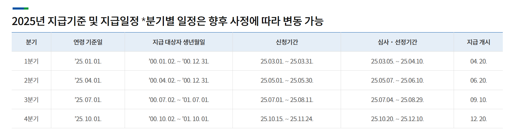 - 신청 기간: 2025년 7월 1일 ~ 7월 31일 (3분기 기준)