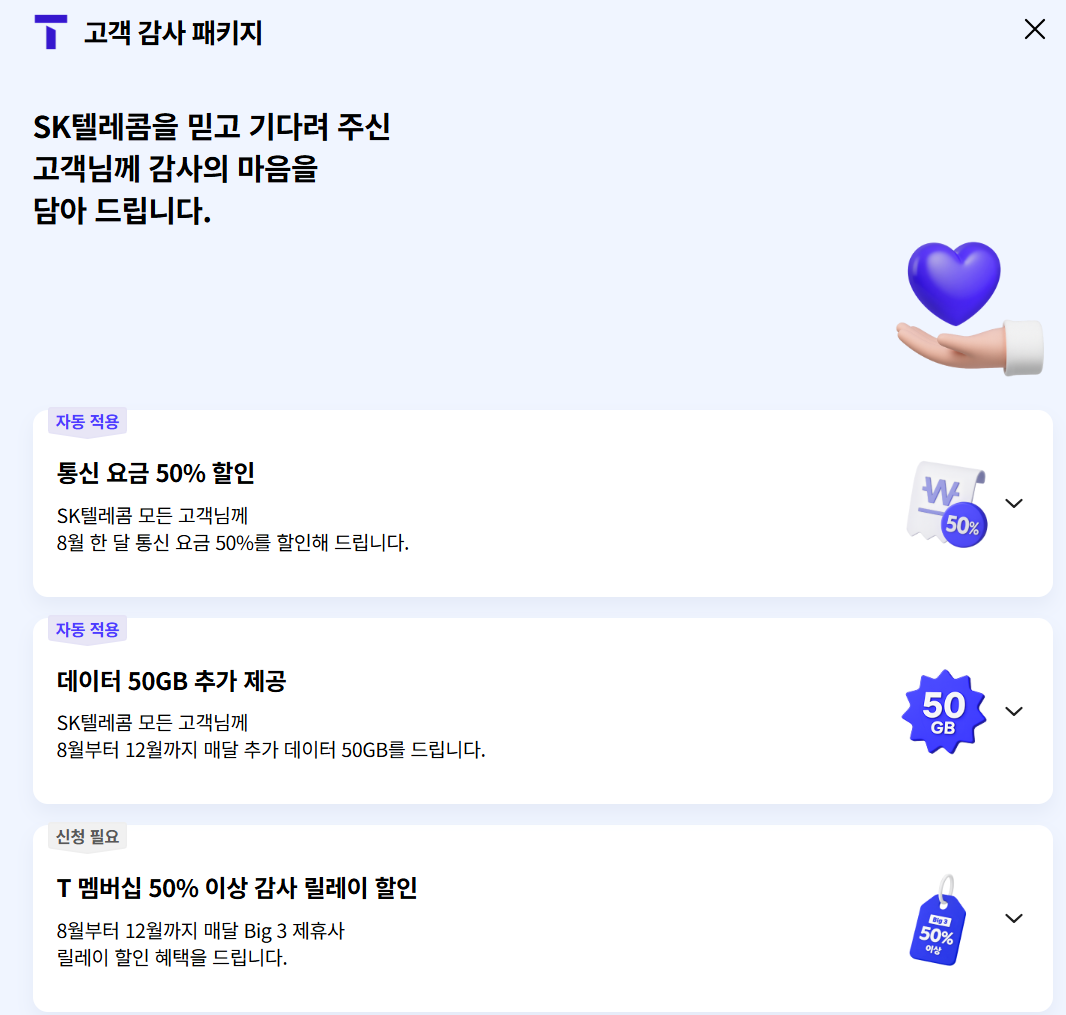 ✅ 8월 한 달간, 통신요금 50% 자동 할인!