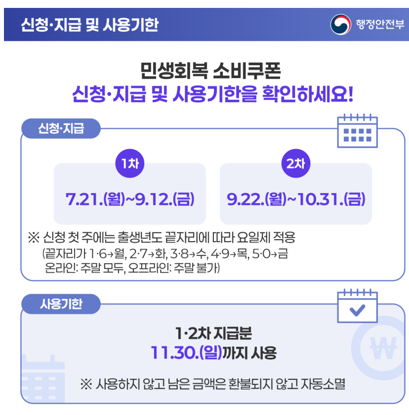 정부는 2025년 민생회복 소비쿠폰 신청 접수를 7월 21일부터 시작합니다.