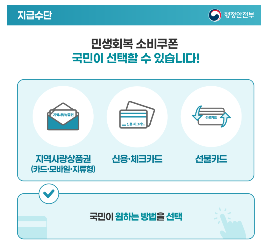 - 지급 수단: 카드 포인트, 지역사랑상품권, 선불카드 중 선택